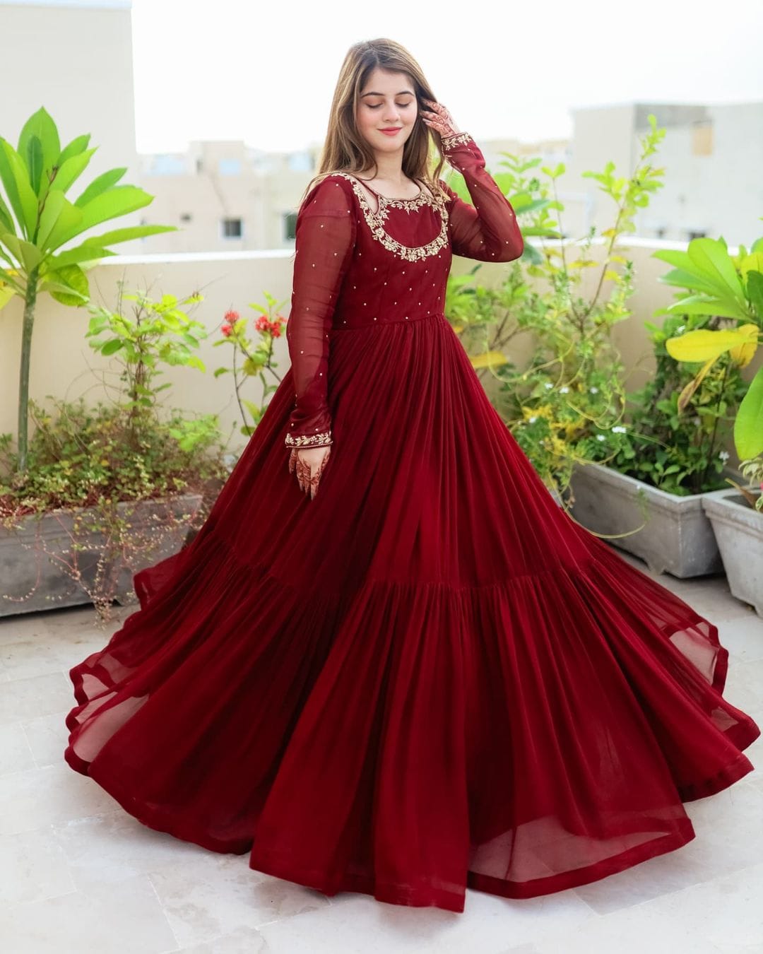 EMBROIDERED SHIFFON MAXI WITH TROUSER